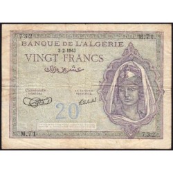 Aperçu rapide Algérie - Pick 92a_1 - 20 francs - Série M.95 - 03/03/1943 - Etat : TTB- 20,00 € RUPTURE