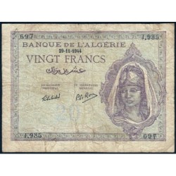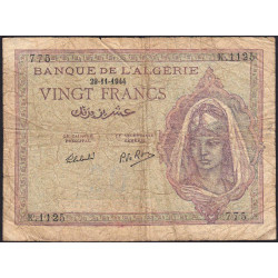 Aperçu rapide Algérie - Pick 92b - 20 francs - Série K.1125 - 29/11/1944 - Etat : B+ 8,00 € RUPTURE
