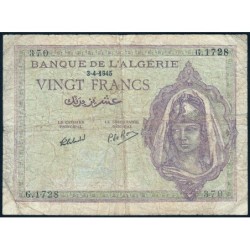 Aperçu rapide Algérie - Pick 92b - 20 francs - Série G.1728 - 03/04/1945 - Etat : B+ 8,00 € RUPTURE