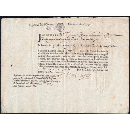 Reçu de Maistre Thomas Chanuet conseiller du Roy au bailliage et siège présidial de Mascon (Mâcon)