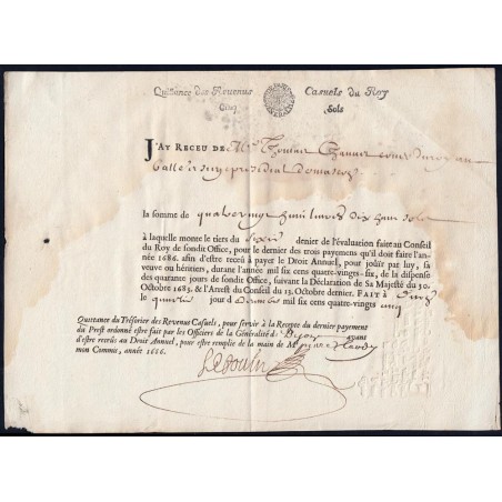 Quittance des Revenus Casuels du Roy