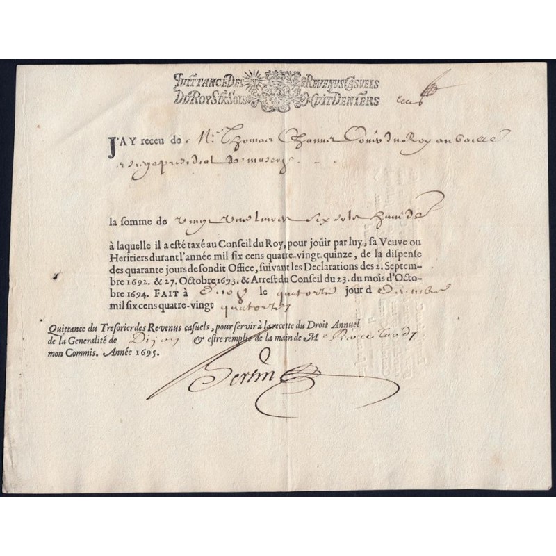 • Date du reçu et de l'enregistrement Généralité de Dijon : 14 décembre 1694