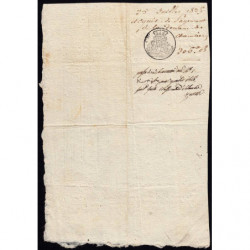 Au revers cachet fiscal à l'extraordinaire de 15 centimes (extraordinaire : valeur du droit gravé à gauche)