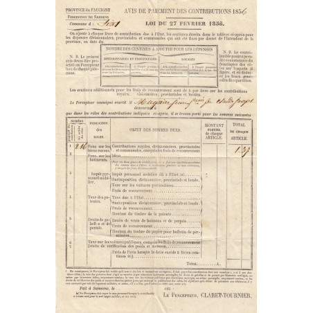 Duché de Savoie - Samoens - Contributions 1856 - 1 livre - Etat : TTB+