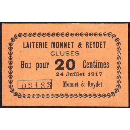74 - Cluses - Laiterie Monnet & Reydet - 20 centimes - Type 74-22 - 24/07/1917 - Etat : SPL+