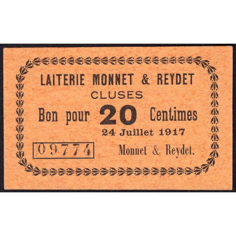 74 - Cluses - Laiterie Monnet & Reydet - 20 centimes - Type 74-22 - 24/07/1917 - Etat : NEUF