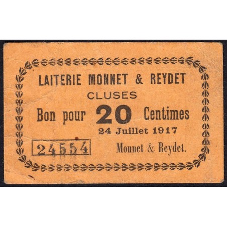 74 - Cluses - Laiterie Monnet & Reydet - 20 centimes - Type 74-22 - 24/07/1917 - Etat : TTB
