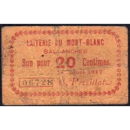 74 - Sallanches - Laiterie du Mont-Blanc - 20 centimes - Type 74-40a - 18/07/1917 - Etat : B