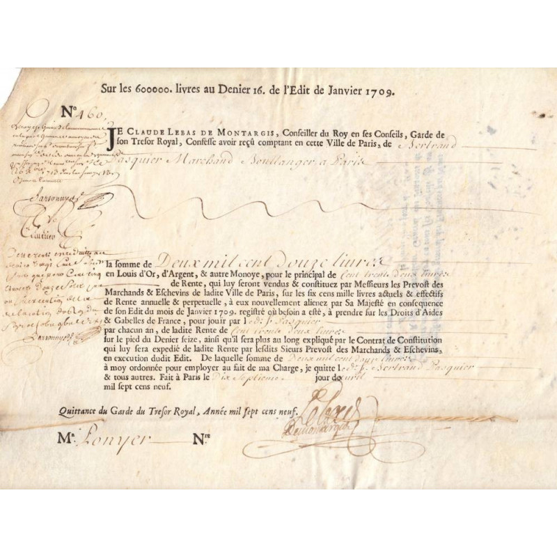 Ce titre de rente correspond à l'Edit de janvier 1709.