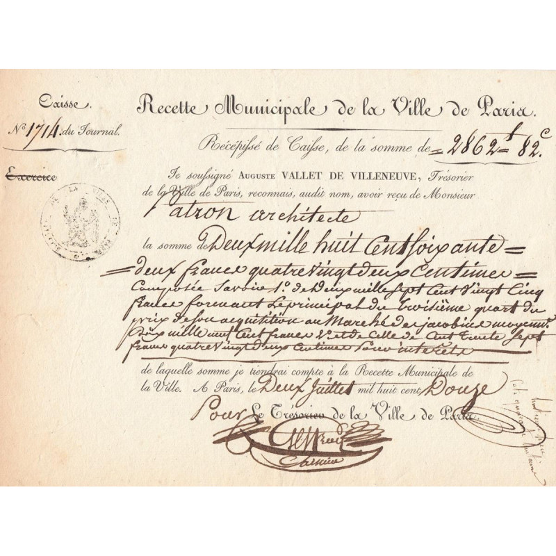 Paris - 1er empire - 1812 - Recette municipale - 2862 francs - Etat : SUP
