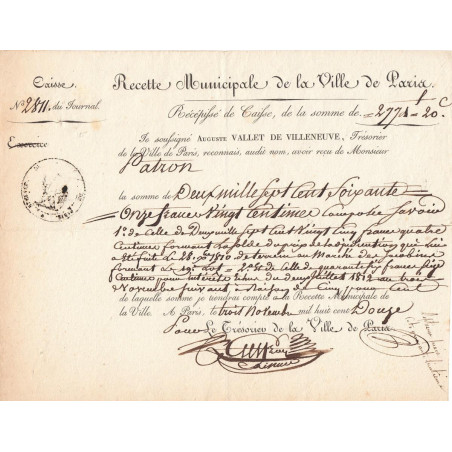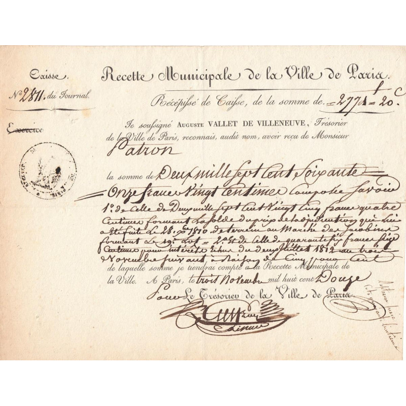 Paris - 1er empire - 1812 - Recette municipale - 2771 francs - Etat : SUP