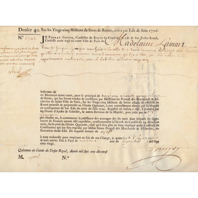 Ce titre de rente correspond à l'Edit de juin 1720.
