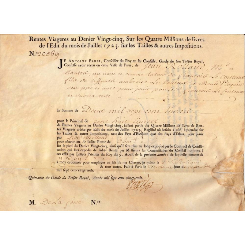 Ce titre de rente correspond à l'Edit de juillet 1723.