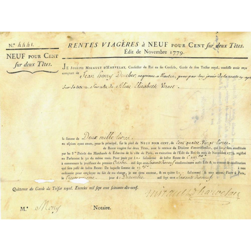 Ce titre de rente correspond à l'Edit de novembre 1779.