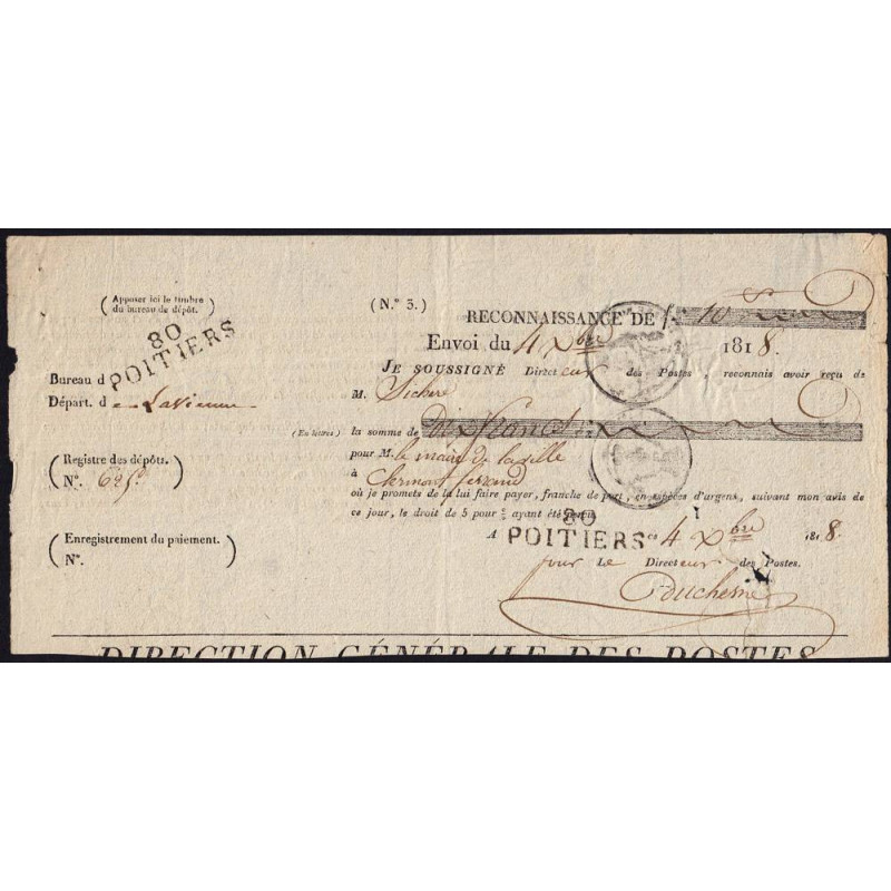 Vienne - Poitiers - Louis XVIII - 1818 - 10 francs envoyés par Poste - Etat : TTB