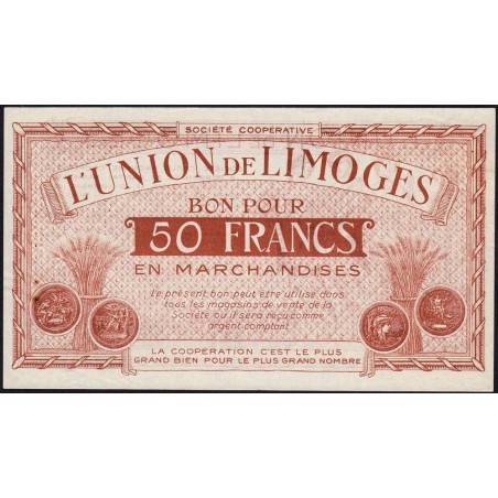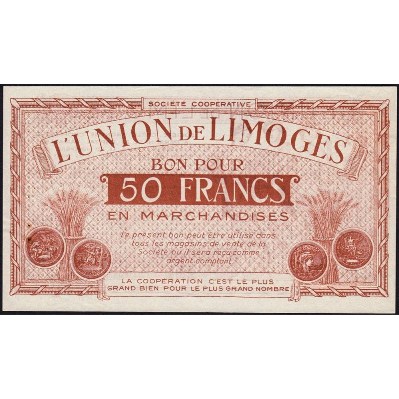 87 - Limoges - Union de Limoges - 50 francs - Type C - (1920-1935) - Etat : TTB+