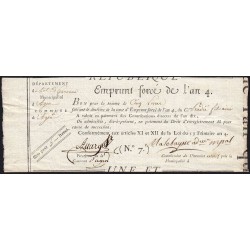 Aperçu rapide Lot-et-Garonne - Agen - 1796 - Récépissé de l'emprunt forcé de l'an IV - Etat : TTB+ 22,00 €