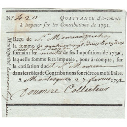 Aperçu rapide Lot-et-Garonne - Montesquieu - Révolution - 1792 - Contributions - 82 livres 19 sols - Etat : SUP 25,00 € RUPTURE