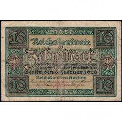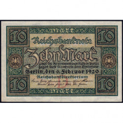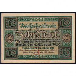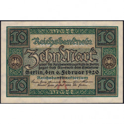 Aperçu rapide Allemagne - Pick 67a - 10 mark - 06/02/1920 - Lettre J - Série X - Etat : SUP 6,00 € RUPTURE