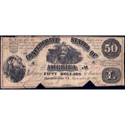 Aperçu rapide Etats Conf. d'Amérique - Pick 35 - 50 dollars - Lettre M - 02/09/1861 - Annulé - Etat : TB- 80,00 €