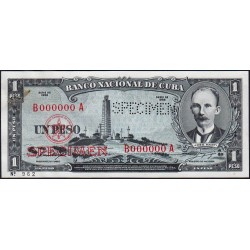 Aperçu rapide Cuba - Pick 87as - 1 peso - Série B A - 1956 - Spécimen - Etat : SUP 120,00 € RUPTURE