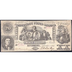 Aperçu rapide Etats Conf. d'Amérique - Pick 33 - 20 dollars - Série 1 - Chiffre 1 - 02/09/1861 - Annulé - Etat : TTB+ 95,00 €