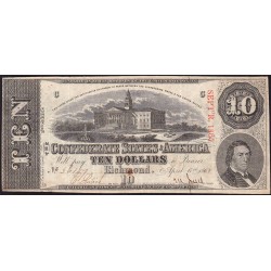 Aperçu rapide Etats Conf. d'Amérique - Pick 60a - 10 dollars - Série 2 - Lettre C - 09/1863 - Annulé - Etat : TTB 70,00 €