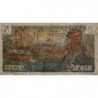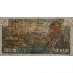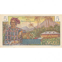 Revers : Femme des Antilles françaises en habits traditionnels accoudée sur une corbeille de fruits, maison créole, palmiers, montagne
