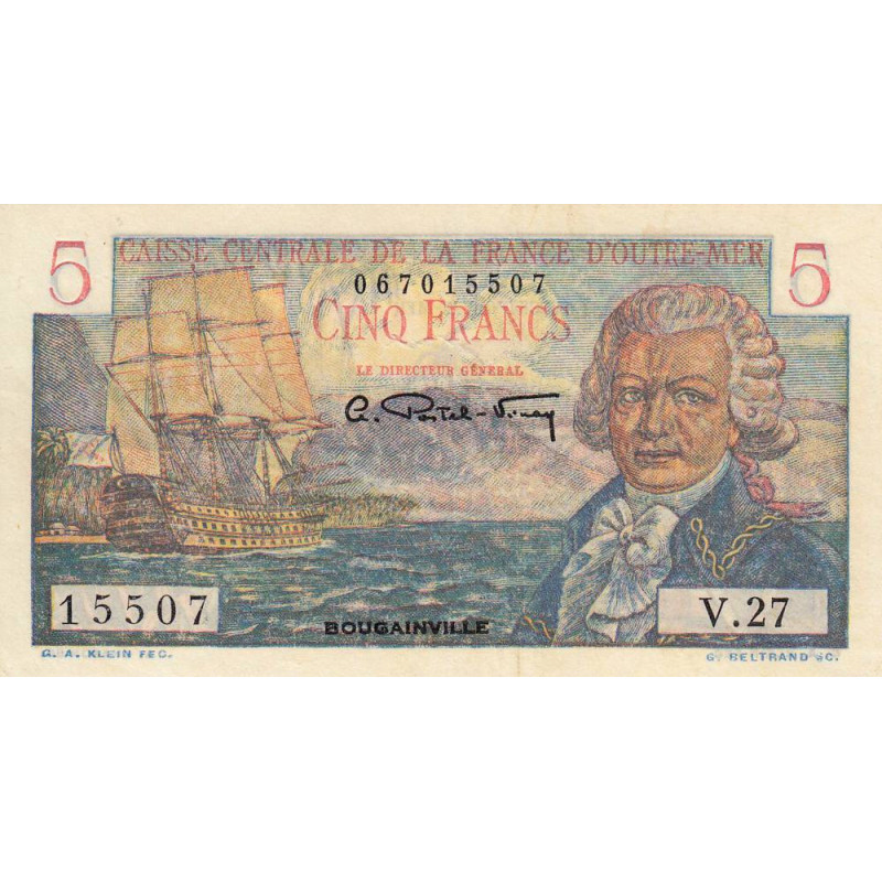Avers : Portrait du navigateur et explorateur Louis-Antoine de Bougainville (1729-1811), caravelle navigant près de la côte