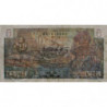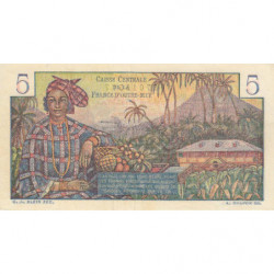 Revers : Femme des Antilles françaises en habits traditionnels accoudée sur une corbeille de fruits, maison créole, palmiers, montagne