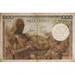 Avers : Jeune femme camerounaise portant un panier rempli de cabosse de cacao, cacoyer avec ses cabosses