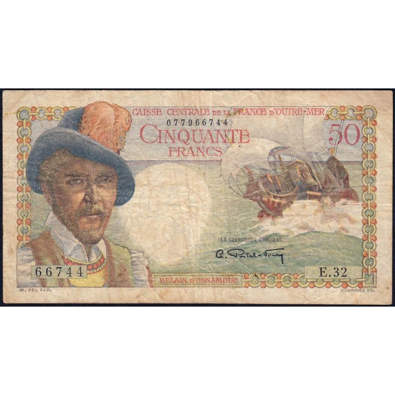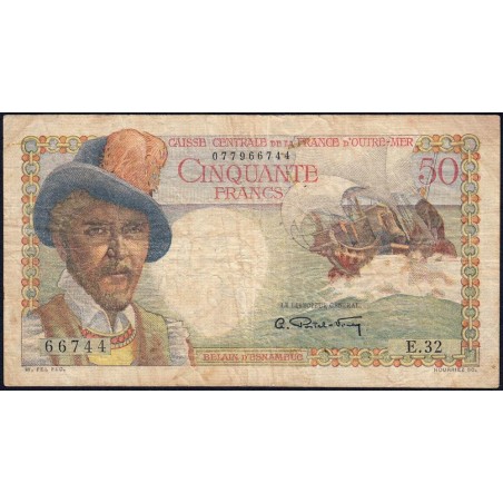 Avers : Portrait du marin, flibustier, aventurier et colon français Pierre Belain d'Esnambuc (1585-1636), caravelle sur la mer