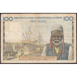 Revers : Vieil homme barbu portant une coiffe, bateau à quai au port de Douala et camion de transport