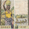 Avers : Portrait de Félix Eboué (1884-1944) gouverneur général de l'Afrique équatoriale française de 1940 à 1944, femme au village avec cruche sur la tête, pirogue sur le fleuve