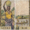 Avers : Portrait de Félix Eboué (1884-1944) gouverneur général de l'Afrique équatoriale française de 1940 à 1944, femme au village avec cruche sur la tête, pirogue sur le fleuve