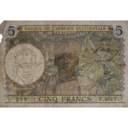 AOF - Pick 21_b2 - 5 Francs - Série F.4017 - 12/08/1937 - Etat : B+