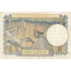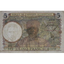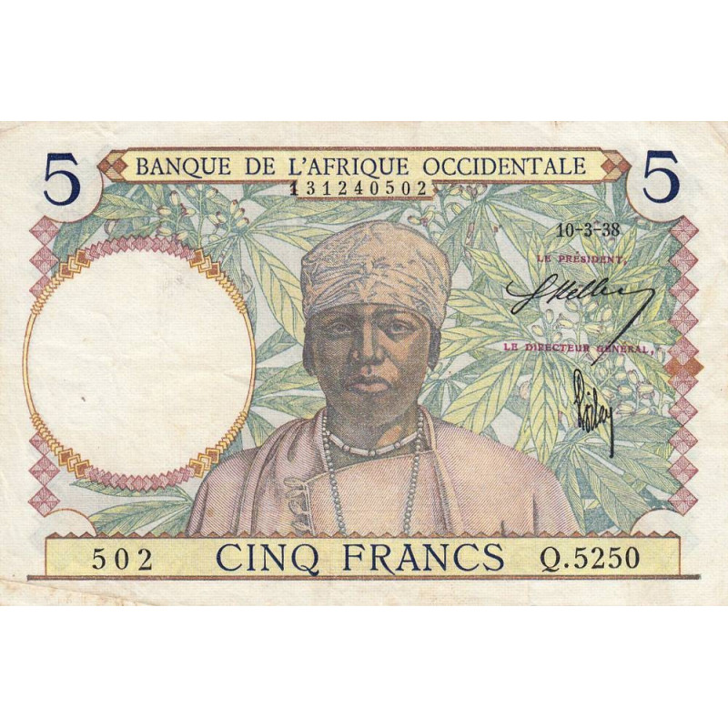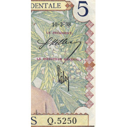 AOF - Pick 21_b3 - 5 Francs - Série Q.5250 - 10/03/1938 - Etat : TTB