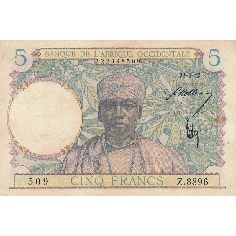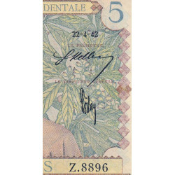 AOF - Pick 25_2 - 5 Francs - Série Z.8896 - 22/04/1942 - Etat : SUP