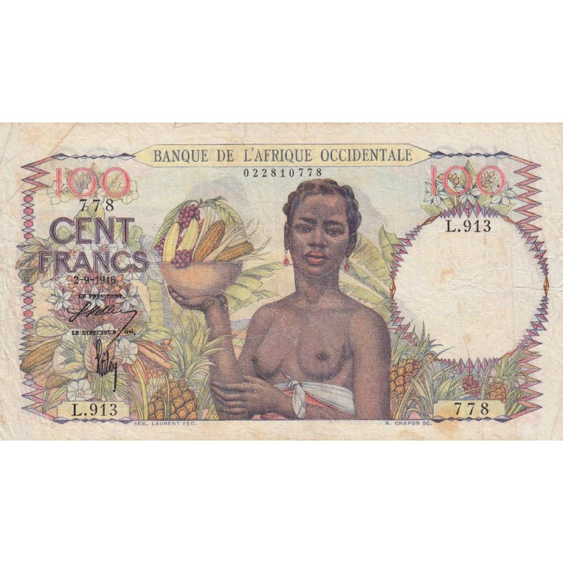 AOF - Pick 40_a2 - 100 francs - Série L.913 - 02/09/1946 - Etat : TB+