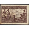 Avers : Pirogue au bord du rivage, un homme assis dans la pirogue, un second tendant un poisson à deux femmes sur le rivage, la première assise, la seconde debout tenant un panier de fruits