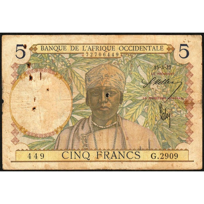 AOF - Pick 21_b1 - 5 Francs - Série G.2929 - 15/03/1937 - Etat : B
