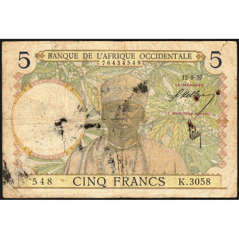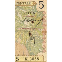 AOF - Pick 21_b2 - 5 Francs - Série K.3058 - 12/08/1937 - Etat : B-