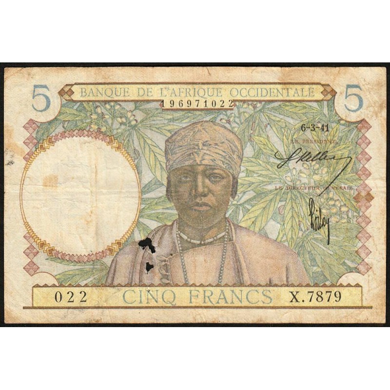 AOF - Pick 25_1 - 5 Francs - Série X.7879 - 06/03/1941 - Etat : B+