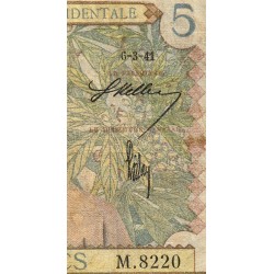AOF - Pick 25_1 - 5 Francs - Série M.8220 - 06/03/1941 - Etat : B-