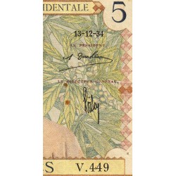 AOF - Pick 21_a2 - 5 Francs - Série V.449 - 17/07/1934 - Etat : TB+
