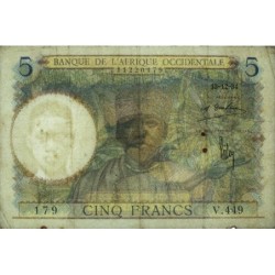 • AOF - Pick 21_a2 - 5 Francs - Série V.449 - 17/07/1934 - Etat : TB+