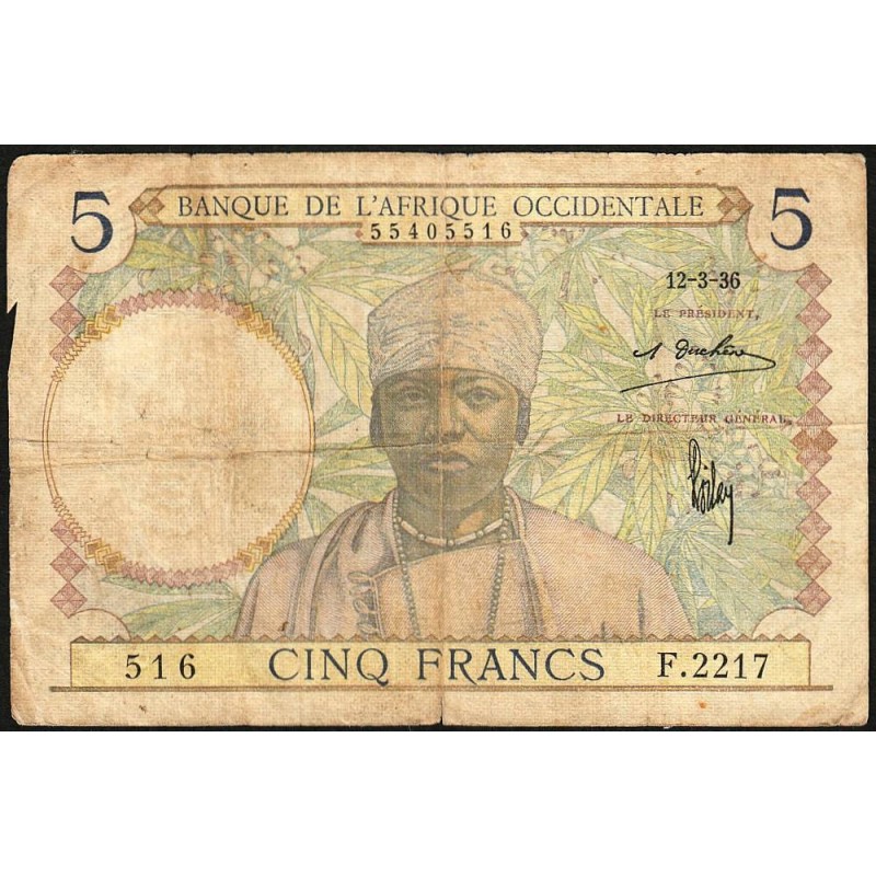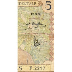 AOF - Pick 21_a4 - 5 Francs - Série F.2217 - 12/03/1936 - Etat : B