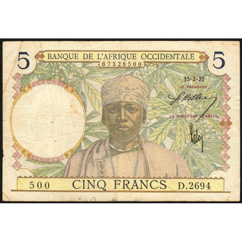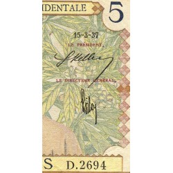AOF - Pick 21_b1 - 5 Francs - Série D.2694 - 15/03/1937 - Etat : TB