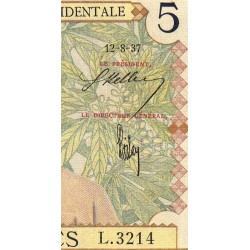 AOF - Pick 21_b2 - 5 Francs - Série L.3214 - 12/08/1937 - Etat : B+