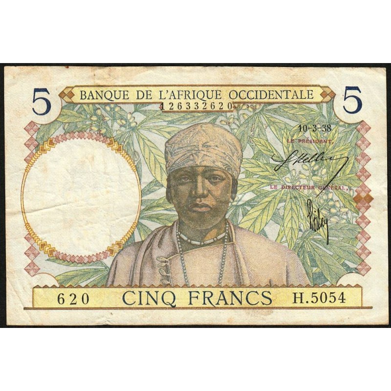 AOF - Pick 21_b3 - 5 Francs - Série H.5054 - 10/03/1938 - Etat : TB